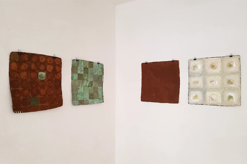 Die Arbeiten faszinieren durch eine geheimnisvolle, samt – rostig, haptische Oberfläche und leuchtenden blau-türkis-grünen Farben.